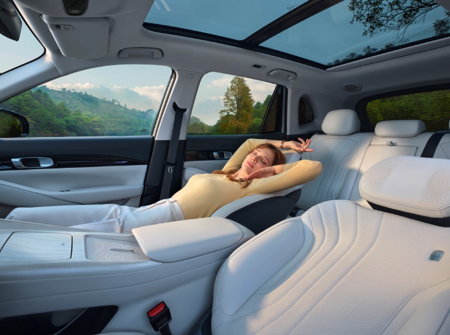 Les sièges avant du GEELY EX5 se rabattent entièrement à plat, offrant un niveau de confort inégalé pour vous détendre et vous détendre en toute simplicité.